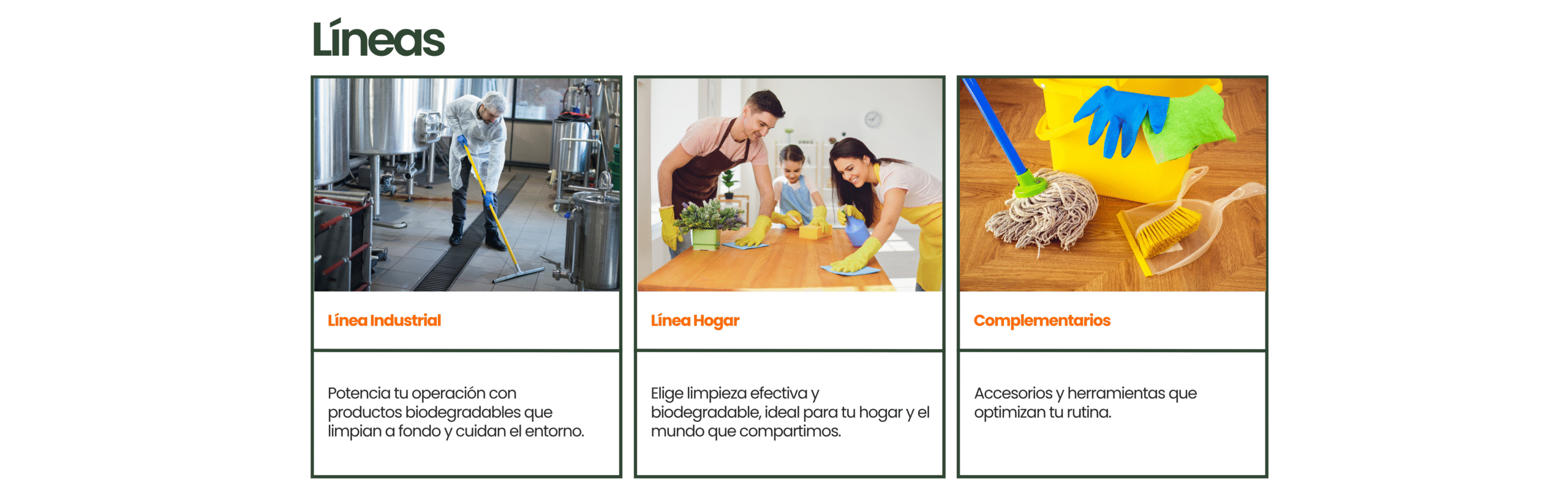 Nuestro portafolio incluye elementos complementarios que facilitan los procesos de limpieza y desinfección de tus espacios. Nuestro compromiso es aportar a la salud, cuidado de la piel de tus colaboradores y la sostenibilidad del medio ambiente, por eso seleccionamos cuidadosamente cada fórmula y material con el que trabajamos.